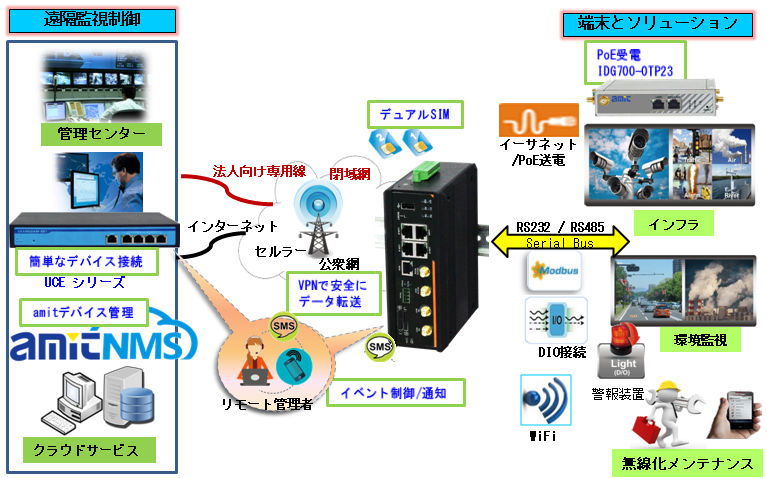 •WAN機能:セルラー、デュアルSIMフェールオーバー