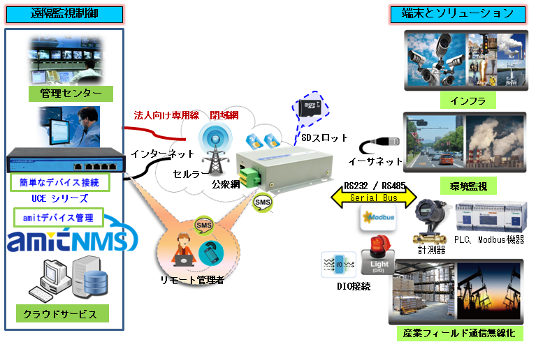 RS485-Based端末:フォークリフト、Modbus機器、 計測器、給湯器