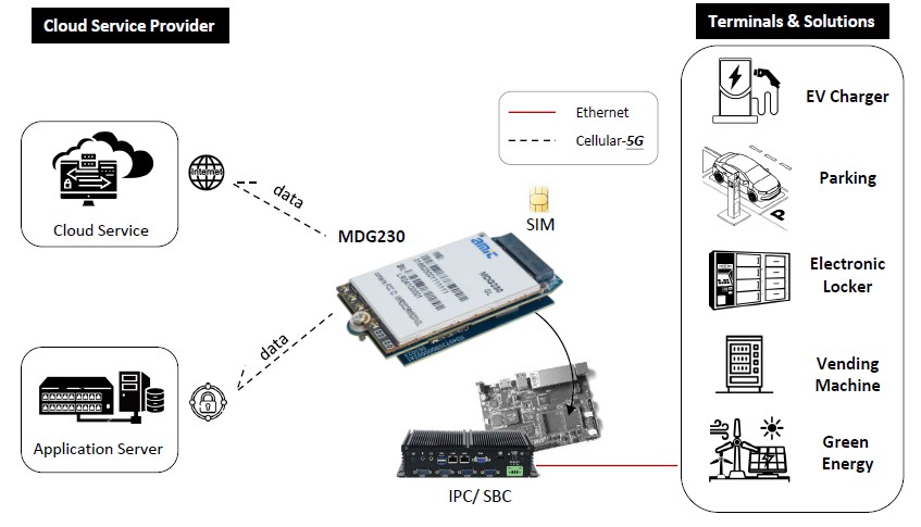 INTRODUCTION The MDG230 is an embedded 5G modem with USB 3.1 interface through its board-to-board connector. It operates as an Ethernet over USB end device that offers 5G connectivity once a SIM card is inserted and pre-configured through user-friendly web GUI. With its intelligent connection monitoring mechanism, it can provide more reliable 5G connection for mission-critical applications.